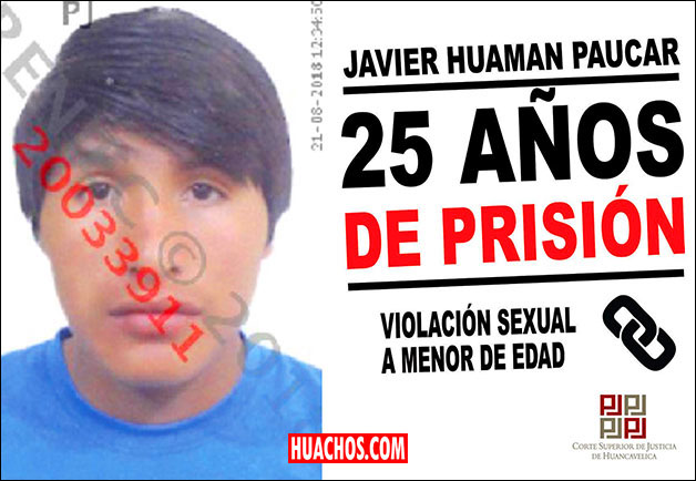 El Juzgado Penal Colegiado Conformado de la Corte Superior de Justicia de Huancavelica, integrado por los magistrados Samaniego Espinoza, Pozo Chávez y Jurado Taipe; condenaron a 25 años de pena privativa de la libertad con carácter de efectiva, mediante el cual lo encontraron responsable penalmente a Javier Huamán Paucar (18) como autor del delito contra la Libertad Sexual, en la modalidad de violación sexual de menor de edad, en agravio de la menor de iniciales G.B.F. que se computa desde el tres de febrero de dos mil dieciocho (según notificación de detención) y vencerá el dos de febrero de dos mil cuarenta y tres el mismo que lo cumplirá en el Establecimiento Penal de Huancavelica.