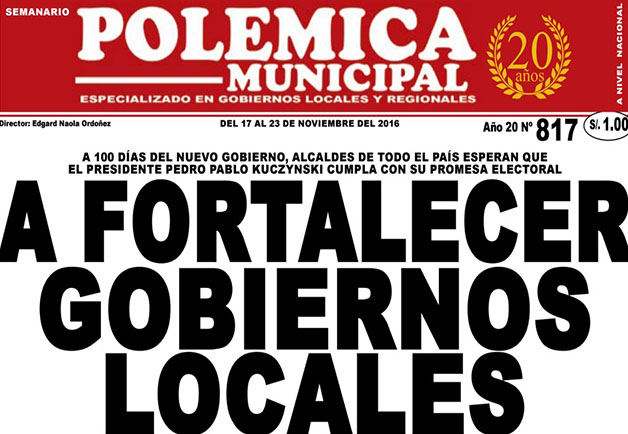 « El gobierno de PPK ha priorizado una alianza con los Gobernadores Regionales. Eso está muy bien. Pero es preciso comprender que los alcaldes son más de 1800 autoridades elegidas democráticamente que están en contacto diario con la gente y tienen responsabilidades muchas veces de la creación de ciudades desde cero. »