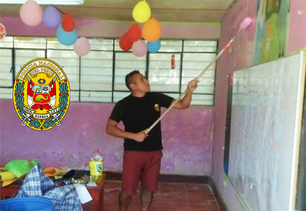 El Comisario Moreyra y sus hombres prestan ayuda al I. E. 366 del anexo de Pichuta pintando y haciendo limpieza de las aulas.