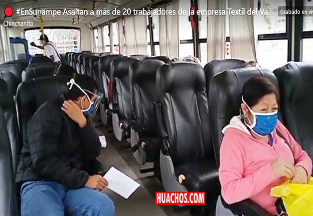 Esta unidad se detuvo en esta zona para recoger a algunos trabajadores de una empresa textil. Este fue el momento tomado por cinco de los criminales para abordar el vehículo y atemorizar al personal con arma de fuego.