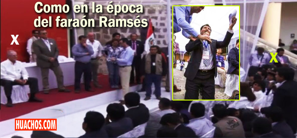 Ante la mirada atónita de sus colegas, el alcalde de Huancano no tiene otro remedio que arrodillarse para ganarse los favores de PPK.