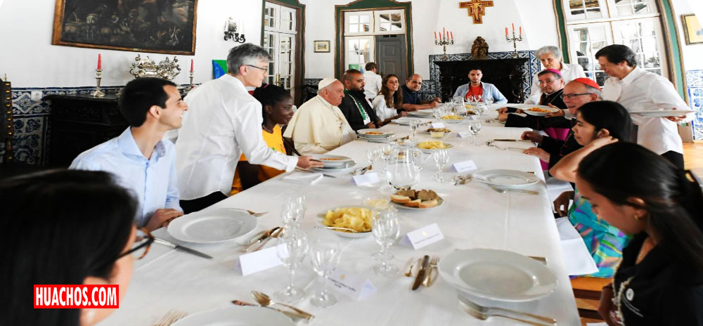 El almuerzo del Papa con algunos jóvenes en la Nunciatura de Lisboa