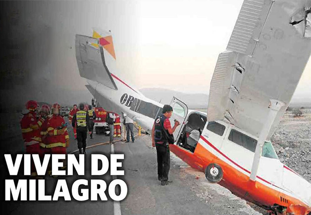 NASCA - Seis personas resultaron heridas tras el aterrizaje de emergencia y despiste de una avioneta en las pampas de Nasca.