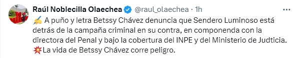 La ex primera ministra de Pedro Castillo, Betssy Chávez, se encuentra en estado crítico tras 3 días en huelga de hambre seca dentro del penal Anexo Mujeres de Chorrillos, como medida de protesta por los supuestos abusos de los que sería víctima y que ha denunciado en reiteradas ocasiones. Un médico del propio INPE advirtió que, de continuar con esta medida extrema, su organismo podría colapsar en las próximas 72 horas, lo que provocaría su muerte.