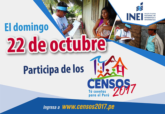 Solo hasta el 30 de octubre se darán a conocer los resultados finales de los tres Censos Nacionales 2017, adelantados el 22 de octubre del año pasado por un millón de voluntarios, y cuyo informe paulatinamente se revela de parte del Instituto Nacional de Estadística e Informática (INEI).