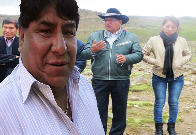 El gobernador regional Glodoaldo Alvarez y el alcalde de Huaytará Jesus Huarcaya Paucar reciben de la Comunidad Campesina el terreno para el hospital, febrero 2015.