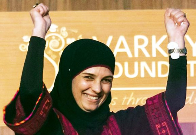En el marco de la ceremonia de entrega, celebrada en Dubai, se proyectaron vídeos del papa Francisco, el duque de Cambridge y Bill Clinton rindiendo homenaje a una mujer que creció en un campamento de refugiados en Belén y que decidió dedicar su vida a la docencia después de que unos soldados israelíes dispararan a dos de sus hijas.
