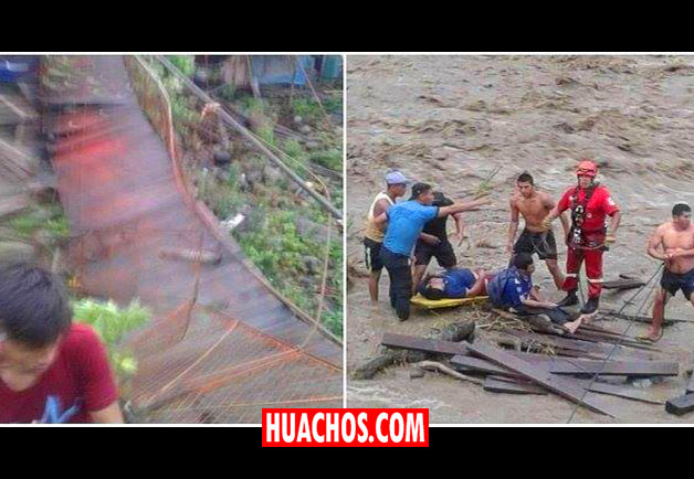El colapso del puente se produjo por el aumento del caudal del rio Kimbiri y como consecuencia resultaron heridas las siguientes personas: