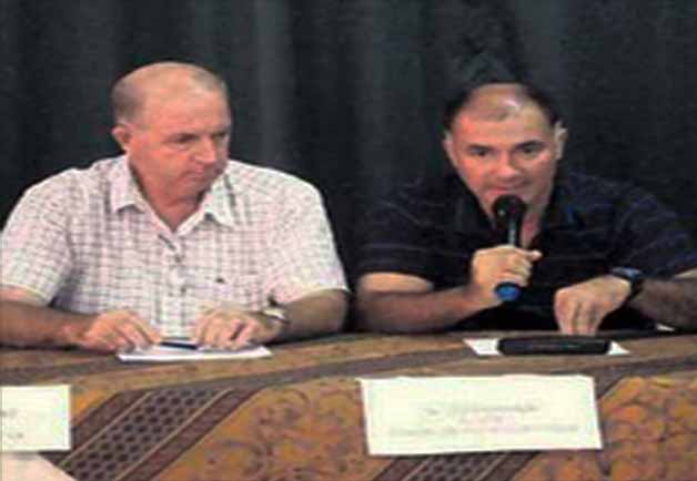 El gobernador de Ica Fernando Cilloniz (izq.) afirmó que es el Sr. César Carrranza Falla que tendrá la última palabra del lugar donde se va construir el futuro estadio de Chincha.