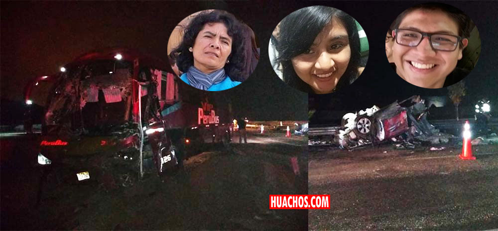 El choque fue frontal entre la camioneta donde viajaban la familia y el autobus de PeruBus. Foto: María Isabel Arias Faustin, y sus dos hijos Pedro y Kelly (estudiantes universitarios) murieron al instante.