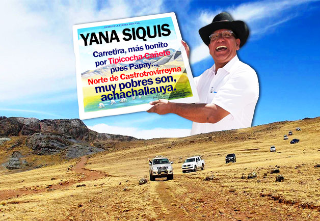 Comitiva de más de una docena de lujosos 4 X4 del gobernador de Huancavelica para supervisar su ruta Tipicocha-Cañete. Gastan el dinero sin medida cuando se trata de este tipo de desplazamientos que son con todos los gastos pagados para toda la comitiva, inluyendo hoteles, restaurantes, gasolina, choferes, viaticos... todos ganan.