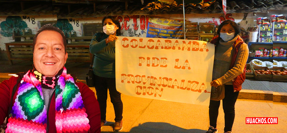 Enterados del arribo del congresista Iro Chagua a tierra colcabambina, los pobladores prepararon sus pancartas y se dirigieron al frontis de la comuna de Colcabamba, para exhortarle su apoyo en la provincialización del distrito de Colcabamba.