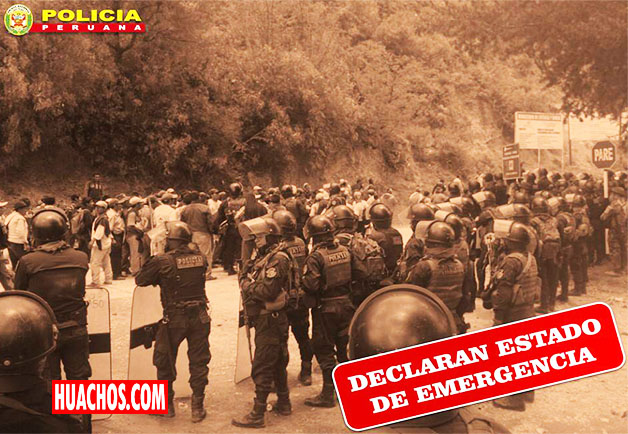 Que, mediante Oficio N° 196-2018-DGPNP/SEC, e Informe N° 002-2018-VI-MACREPOL/SEC-OFPLAAD, la Policía Nacional del Perú solicita al Ministro del Interior que se declare el Estado de Emergencia en los distritos de Quichuas y Pichos, provincia de Tayacaja del departamento de Huancavelica, a fin de asegurar el control del orden público y evitar actos de violencia o cualquier ilícito penal que se pudiera cometer en dichas zonas;