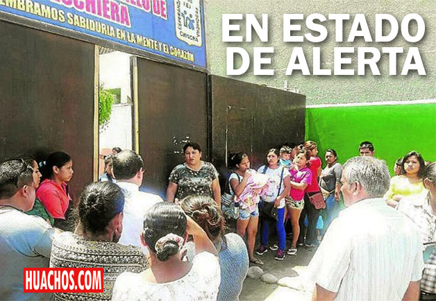 Foto Diario Correo. Padres esperan impacientes a sus hijos en la puerta principal del colegio chinchano.
