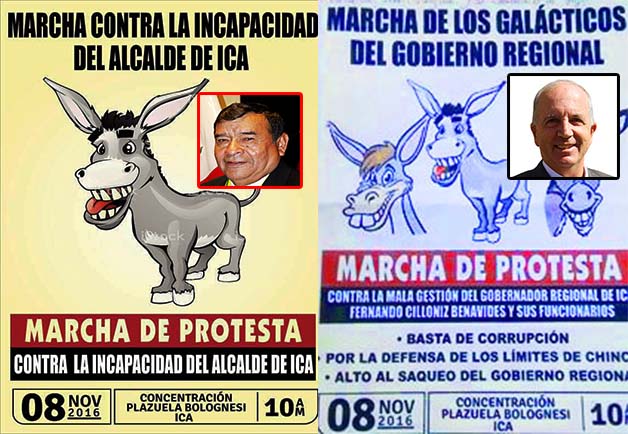 El gobernador regional de Ica y el alcalde provincial son los objetivos del "tiro al blanco" protestatario de los ciudadanos iqueños el día de mañana en la Plaza Bolognesi.
