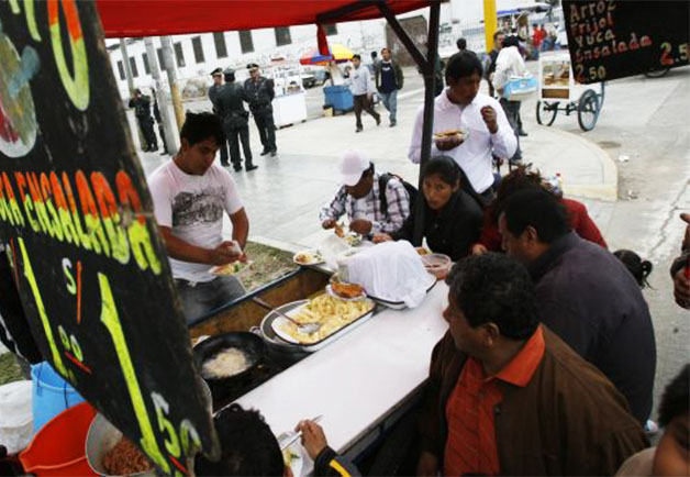 Cada día hombres y mujeres empujan carretillas, mueven ollas, sartenes y encienden fuego para preparar comida que por menos de dos dólares consumen muchos ciudadanos, una realidad distinta al boom de la gastronomía peruana que ha logrado celebridad internacional.