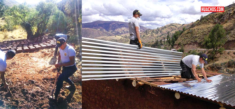 En la segunda etapa se trasladaron troncos de eucalipto y se realizó el techado de los ambientes del inmueble con el apoyo de autoridades y algunos vecinos del distrito y finalmente en la tercera etapa se realizaron trabajos de albañilería y equipamiento de la vivienda con camas, colchones, frazadas, así como la entrega de productos de primera necesidad y se sembraron 20 árboles de durazno.
