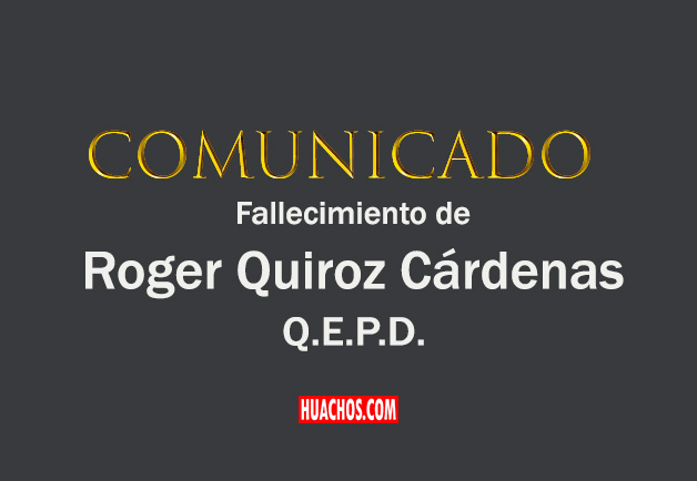Huachos.com anuncia con dolor el fallecimiento del distinguido hijo de Huachos Sr. Roger Quiróz Cárdenas (Q.E.P.D.) acaecido el día de hoy en la ciudad de Córdova (Argentina) lugar donde residía con su familia. No tenemos más informacion al respecto...