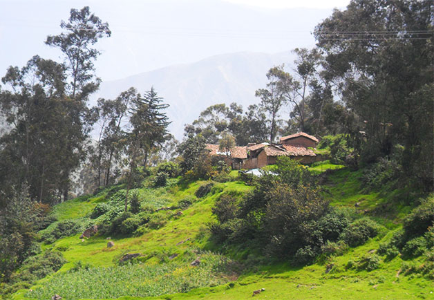 El huerto familiar está en Cruzpata, territorio de nísperos, donde además produce nogales, peras de agua, duraznos, manzanas, y sobre todo variadas y multicolores flores. Calabaza, marco, chilca y eucalipto le brindan un manto verde permanente a este microclima. Las pequeñas parcelas son regadas por una delgada acequia que cruza el pueblo. Pequeño manantial, escondido entre un pequeño bosque, al pie de solitario aliso, refresca y nutre a la vecindad.