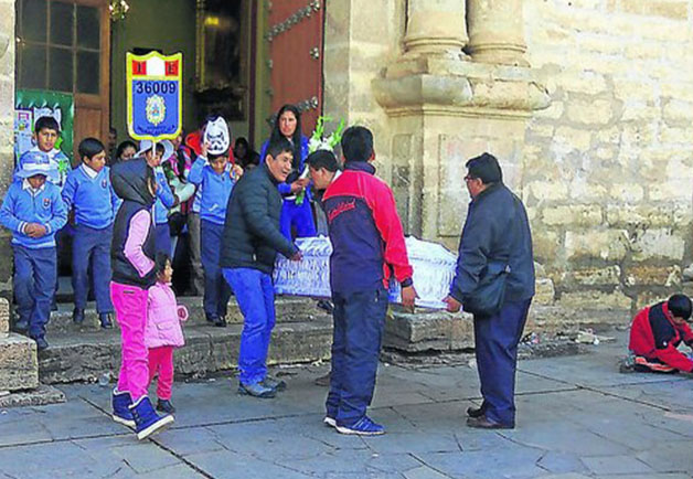 Asimismo, algunos trabajadores de limpieza de la Municipalidad Provincial de Huancavelica, acompañaron a la señora Margarita Quispe Merino, abuela de Jean Pool, pues ella labora en esa área.