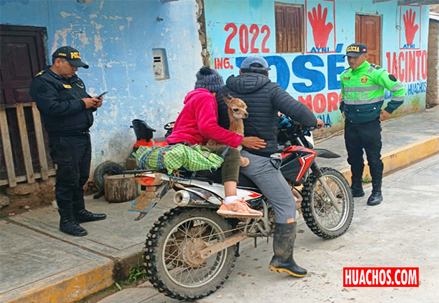 Pedro F.F.S. (45) y Elba A.M.C. (21), fueron intervenidos por agentes policiales de la Comisaría de Huachos cuando transitaban en un vehículo menor por inmediaciones del parque del anexo de Huajintay, hallando en su poder una vicuña, misma que forma parte del Patrimonio Natural de la Nación siendo una especie protegida.