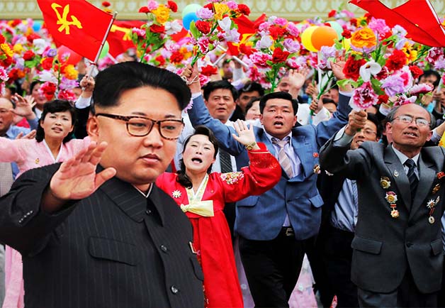 “¡Manse! ¡Manse!” (“¡Larga Vida! ¡Larga Vida”), se desgañitaban los participantes al pasar bajo la tribuna. Mientras miles de personas que llenaban la plaza iban creando mosaicos humanos para formar lemas propagandísticos -“El Partido de Kim Jong-Un”, “El Partido del Líder”-, otros miles desfilaban en formación. Vestidos con sus mejores galas, ellos de traje y corbata y ellas en hanbok o traje tradicional coreano, unos portaban la bandera del partido, otros acompañaban a una veintena de carrozas que exhibían temas patrióticos y militares y repetían las alabanzas al mandatario: “¡Gloria a nuestro adorado líder!”, o “Larga vida al camarada Kim, el gran líder de nuestro pueblo”.