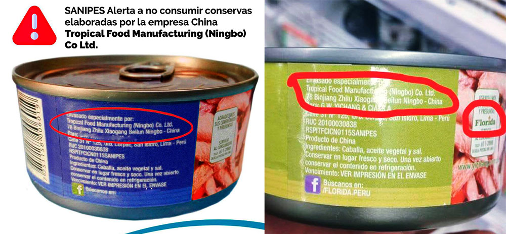 Comunicado: @SanipesPeru alerta al público a NO CONSUMIR conservas de pescado producidas por la empresa china TROPICAL FOOD MANUFACTURING (NINGBO) Co., Ltd. y ha notificado a las empresas importadoras para el retiro inmediato de sus productos. https://t.co/DhEsHgeHSW pic.twitter.com/lFsgGJt3PR