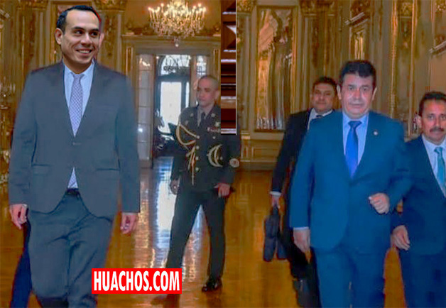 Tomás Gálvez y sus colabodradores ingresan al Palacio de Gobierno.