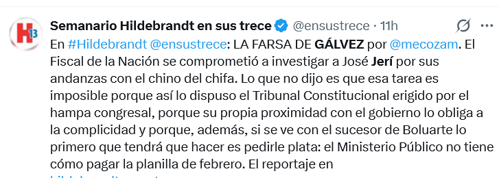 Gálvez detalló que el interrogatorio se extendió por casi tres horas y que el jefe de Estado respondió aproximadamente 30 preguntas relacionadas con el caso Chifagate. El fiscal precisó que las consultas estuvieron a cargo tanto del despacho fiscal como de la Procuraduría. “Son alrededor de 30”, señaló al referirse al número de preguntas formuladas durante la diligencia.