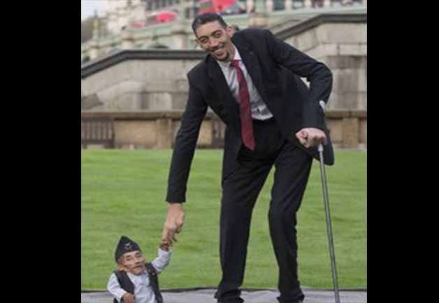 Los plusmarquistas de estas asombrosas estaturas son: Sultan Kösen, un turco de 31 años que mide 2,51 metros, y Chandra Bahadur Dangi, un nepalí de 74 años que tan sólo mide 54,6 centímetros. Sultan, que también tiene el récord de la persona viva con las manos más grandes -28,5 centímetros- posee este particular registro desde 2009, cuando desbancó del puesto al chino Xi Shun.