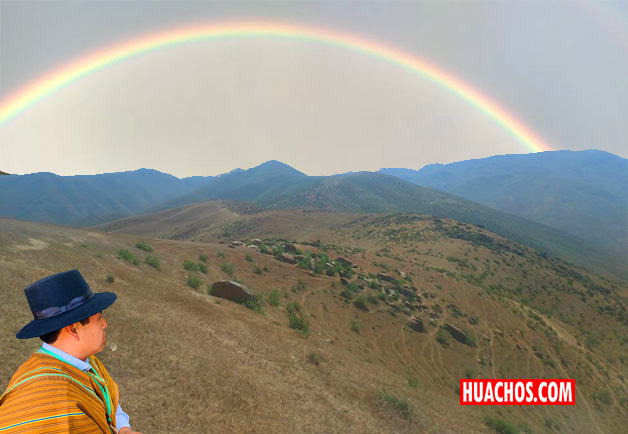 Cuando retornábamos arriando las vacas, rumbo la estancia de Huancapite, las cargadas nubes que estaban sobre el suelo, se iba despejando, el sol salía y sus rayos penetraban la débil capa del cerrazón, de pronto se escuchaba un sonido extraño, cuando en eso apareció, delante de mí un arco iris pequeño, redondo, en medio de ella estaba mi sombra.