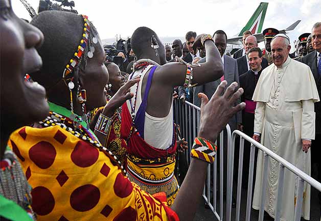 El papa Francisco ha llegado a Kenia, su primera parada de un tour africano considerado de alto riesgo. El pontífice se ha referido al terrorismo nada más al aterrizar, uno de los temás que más preocupan en un continente especialmente golpeado por la barbarie yihadista.