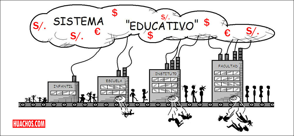 Formatean nuestra impalpable e ilimitada mente, convirtiéndolos en una estructura acartonada que almacena teóricos conocimientos, aniquilando nuestra innata imaginación divina como insinúa Ken Robinson, sacrifican nuestra creatividad ofreciéndonos una prometedora y lucrativa carrera en nombre del desarrollo, abocándose a cultivar la cultura de la competencia individual, desatando de esta manera una encarnizada batalla entre individuos, en pos de comodidades materiales.