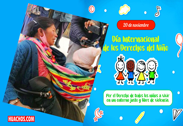 Madre de familia y su hijo fue enmarocada por la policia de Juliaca debido a una denuncia de su marido celoso. Imagen de fondo: Publicidad institucional del Tribunal Constitucional del Perú.