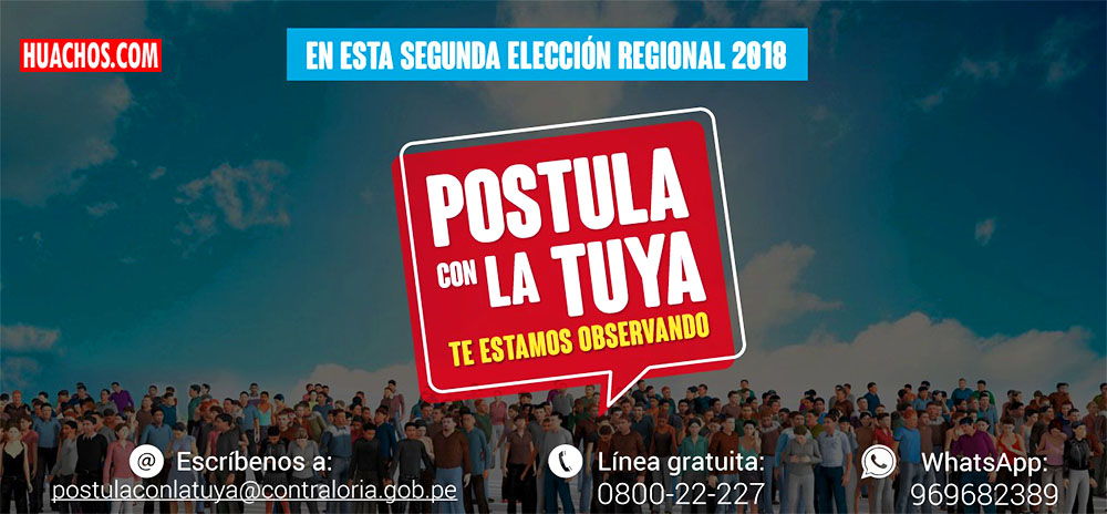 Los ciudadanos de quince departamentos del país podrán continuar alertando a la Contraloría General de la República, a través del programa de prevención POSTULA CON LA TUYA, sobre el presunto uso irregular de recursos públicos a favor de candidatos, durante la campaña por la Segunda Elección Regional 2018, que se llevará a cabo el domingo 9 de diciembre.