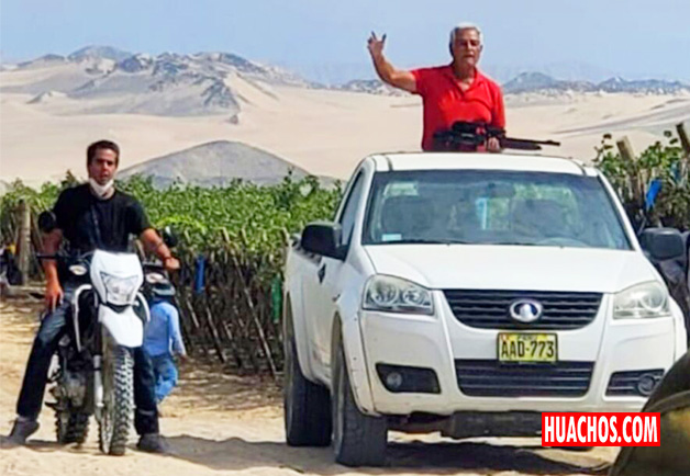 La fotografía del sujeto que porta un arma de fuego fue tomado por una de las personas en manifestación. Se ve al sujeto portando el arma en la tolva de una camioneta modelo Wingle 5 de la marca Great Wall de placa AAD-773, perteneciente a la empresa RVR AGRO E.I.R.L. Se evidenció que la mencionada empresa es dueña del Fundo Luzmila, el mismo que registra muchas denuncias por sobre abusos laborales en cuanto a trato, alimentación y plusvalía.