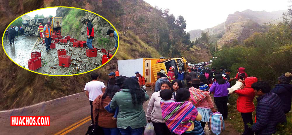 El camión accidentado llegaba del distrito de Yauli a Huancavelica llevando gran cantidad de cajas de cerveza.