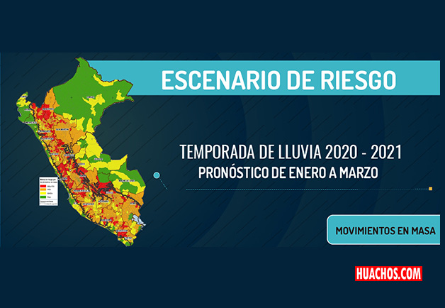 Los “Escenarios de Riesgos para la Temporada de Lluvias 2020-2021” elaborado por el centro nacional, han identificado un total de 3.768.175 personas que estarían en riesgo muy alto ante la ocurrencia de deslizamientos, flujos de detritos o huaycos entre otros tipos de movimientos en masa, en 351 distritos de 19 departamentos.