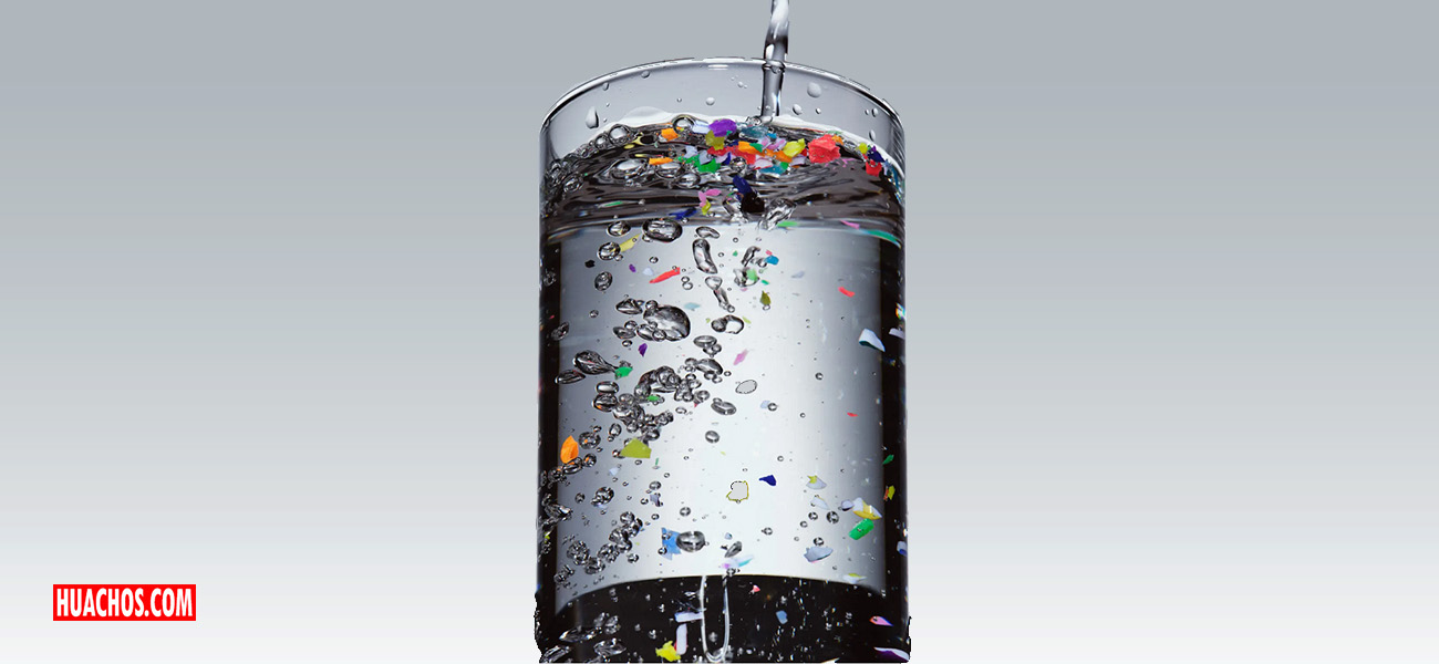 Un vaso de agua con microplásticos.
