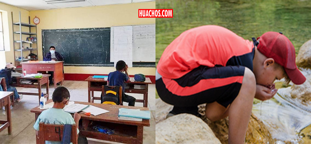 Estudiantes de Quichua para calmar la sed tienen que ir a la acequia como en los viejos tiempos