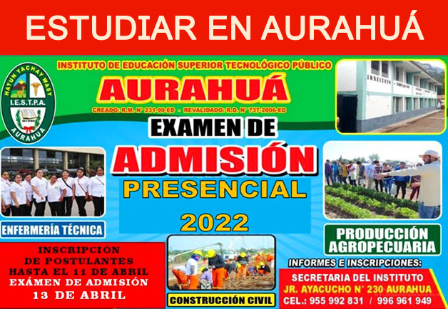 Exámen de admisión presencial 2022 en el IESTP del distrito de Aurahuá
