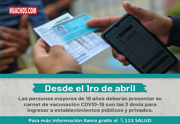 El Minsa indicó que personas desde los 18 años tendrán que presentar su carnet de vacunación con la tercera dosis en el ingreso a establecimientos cerrados a partir del 1 de abril