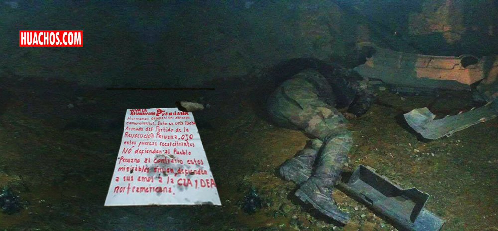 #EmboscadaTerrorista En el lugar de la emboscada (carretera Anco-"Churcampa Hcvca), los terroristas tras asesinar a los policías dejaron propaganda terrorista. Urgente, un grupo especializado de Fuerzas Combinadas. Es posible derrotar al terrorismo. pic.twitter.com/mMKh1PP2BZ