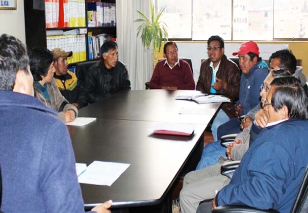 Integrantes del Frente de Defensa conversan con el alcalde de Huancavelica.