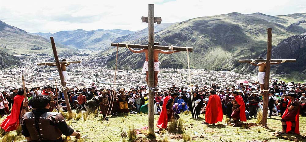 Huancavelica es un destino particular durante estas celebraciones de Semana Santa andina, donde podemos apreciar coloridas alfombras y actos singulares como el Vía Crucis más alto del mundo; desarrollado el viernes santo en el Cerro Oropesa, ubicado a 3680 metros sobre el nivel del mar.
