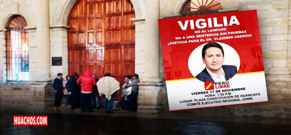 Con frases como “¡Justicia para el Dr. Vladimir Cerrón!” o “¡No a una sentencia sin pruebas!”, la convocatoria para la vigilia fue compartida por redes sociales con una fotografía de secretario general de Perú Libre. 7:00 p. m., plaza Constitución.