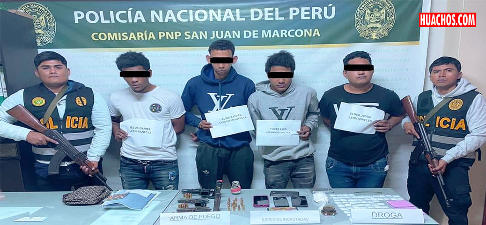 Continuando con las diligencias, se dirigieron a un inmueble ubicado en el asentamiento humano Rutas del Sol, mz. 12, lote 11, Marcona, en donde se intervino a Pedro Luis Hernández Mujica (19) y Elder José León Mireles (25), a quienes se les encontró dos armas de fuego con marca y número de serie erradicadas. Al registro “in situ”, se hallaron cuadernos y libretas donde tenían la relación de cobro de cupos y celulares; del mismo modo, se encontró 22 proyectiles de armas de fuego, 61 bolsas con pasta básica de cocaína (PBC), dos bolsas con “Tusi” y una bolsa con clorhidrato de cocaína.
