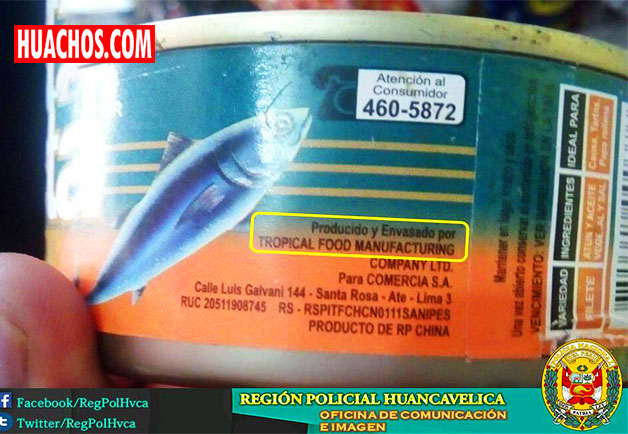 HUANCAVELICA - Personal policial del Departamento de Seguridad del Estado y autoridades competentes ejecutaron un operativo multisectorial con la finalidad de detectar conservas de pescado producidos por la empresa china Tropical Food Manufacturing, al haberse detectado presencia de gusanos en un lote de su producción.