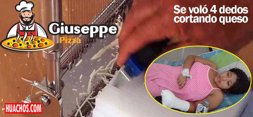 Un lamentable accidente laboral le ocurrió la semana pasada a la joven trabajadora Joselin Katherine Almeyda Rojas (20), de la empresa Pizzería Giusseppi situado en la Plaza de Armas 124 en Chincha Alta, cuando se encontraba manipulando una maquina moledora de queso, insumo de las pizzas. Ella pierde 4 dedos.