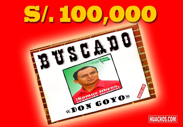 Gregorio Santos alias ‘Don Goyo’ entró al programa de recompensas. Ministerio del Interior ofrece 100 mil soles por información que ayude a capturarlo.